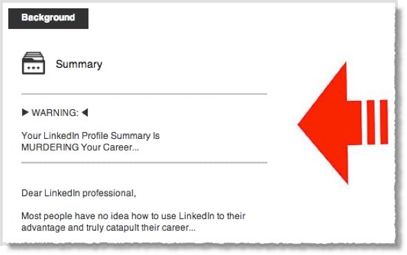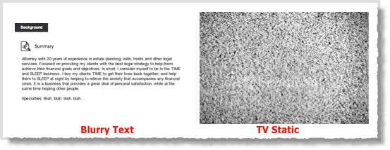 Most people don’t bother with this step, so there’s nothing for an eyeball to grab onto. Do you see how this typical LinkedIn profile summary looks a looks a lot like static on a TV set?